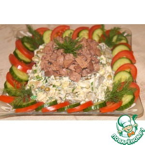 Описание: Хотела сделать салатик с консервированной рыбкой, что-нибудь типа скумбрии, полезла в шкафчик и обнаружила там баночку тресковой печени. И так мне захотелось ее отведать, но решила чего-нибудь сочинить к ужину вроде салата. Исходя из продуктов, обнаруженных в холодильнике, сочинился такой вариант.