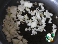 Разогреть оливковое масло на сковороде, и обжарить до прозрачности лук и чеснок |