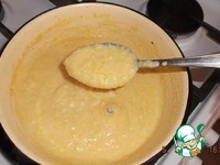 В молоко выкладываем кукурузу, сливочное масло и ст. ложку муки с горкой. Размешиваем и ставим на огонь. Мешая, доводим до кипения, масса должна загустеть. Снимаем с огня и остужаем. |
