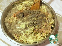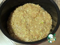 Хорошенько перемешайте. Чашу мультиварки смажьте маслом. Выложите фарш, разровняйте. Готовьте с закрытой крышкой на режиме выпечка при 150 градусах 50 минут. |