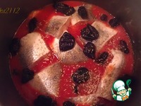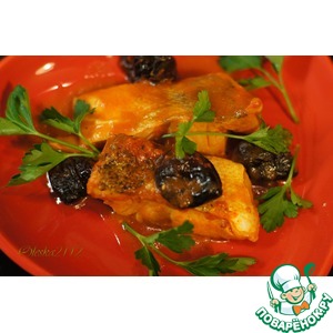 Теперь выкладываем в чашу мультиварки кусочки рыбного филе, промытый чернослив и всё посыпаем розмарином. Солим по вкусу. |