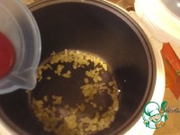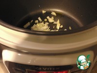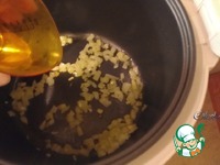 Небольшую луковицу мелко режем. Мультиварку включаем в режиме "Жарка" на 10 минут, вливаем в чашу оливковое масло и обжариваем лук да прозрачности, постоянно мешая. |