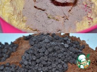 Постепенно, небольшими частями вводим мучную смесь, полученную в шаге 1 и перемешиваем до однородности. Затем добавляем шоколадные капли. |