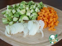 Цуккини и морковь нарезать кубиками, лук – тонкой соломкой. |