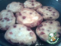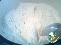 2 яйца перемешать с сахаром, посолить. Добавить яйца и кислое молоко к муке. Молоко добавлять по чуть-чуть, чтобы тесто получилось как густая сметана. Дать постоять минут 20. |
