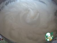 Уменьшить скорость до средней, постепенно добавлять 150 г. сахарной пудры, по 2 столовые ложки за один раз. Взбить до жестких, но не сухих пиков. |