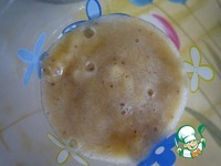 В мякоть банана мы добавляем сок из яблоки и айвы, далее осторожно вливаем апельсиновый сок. Если есть желание, то можно взболтать до однородной массы, а можно оставить слоями. |