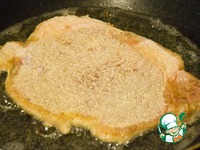Жарить на среднем огне примерно 4 минуты, постоянно покачивая сковороду так, чтобы масло попадало на шницель со всех сторон.
