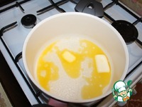 Готовим заварное тесто. 130 мл воды вскипятить, распустить в ней 60 г масла (можно использовать хороший маргарин), добавить щепотку соли. |