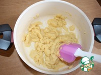 Но потом при тщательном перемешивании - вот так. Готовое тесто должно собираться в комок, хорошо отставая от стенок. |