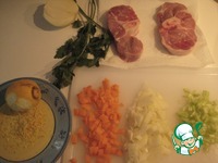 Оссобуко помыть, обсушить бумажными полотенцами. Лук, сельдерей, морковь нарезать мелкими кубиками. |