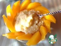 В тарелочку выложить ломтики персиков и кашку. Она хорошо сочетается с нежными персиками. |