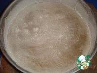 Когда кефир вспенится, добавить в него смесь муки и заварного крема. Хорошо перемешать ложкой. |