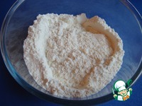 120 г. муки просеять и смешать с содержимым пакета заварного крема (120 г). |