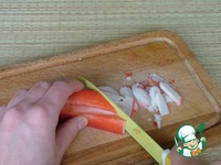 Выкладываем слоями в большой салатник или порционно: крабовое мясо - смазать майонезом, яйца - смазать майонезом, огурец, свёкла. |