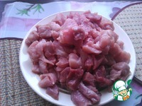 Мелко режем свинину, отправляем в казанчик и обжариваем на подсолнечном масле на сильном огне до золотистого цвета (жидкость должна полностью выпариться). НЕ СОЛИМ! |