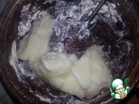 Соединяем заварной крем с кремом с какао, добавляем коньяк. Получается крем "соло" |