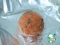 3. Брать небольшое количества рыбы, выкладывать на кусок пищевой пленки, распластать. На середину рыбной лепешки выложить сыр и с помощью пленки формировать круглые котлеты. |