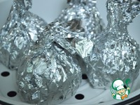 4. Каждую котлету я завернула в фольгу. Затем приготовить их на пару или в духовке. Я варила в мультиварке на пару 20 минут. |