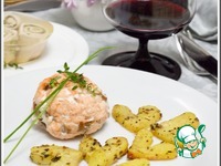 Описание: Котлеты из рубленой семги на пару с сыром и запеченный картофель на гарнир. Такие котлеты можно запечь в духовке, и начинка может быть по вашему вкусу.