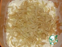 Добавить муку, разрыхлитель и тертое на крупной терке яблоко. |
