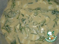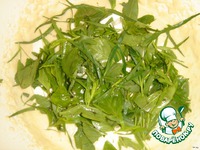 Туда же добавьте измельченную свежую зелень (я рву зелень руками). Аккуратно, чтобы не раздавить кусочки сыра, перемешайте тесто. |