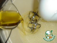 Не переставая взбивать, влейте оливковое масло. |