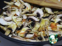 ... возвращаемся к нашей морковке с луком... И добавляем к ним грибочки, перемешиваем и жарим несколько минут |