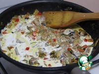 ... заливаем сливками. Дать потушиться 2 минуты, а затем... |