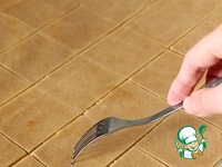 Охлаждённое тесто нарезать на квадраты (треугольники, кружочки, звёздочки - форма может быть любая) и наколоть вилкой. |