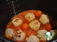 Аккуратно удалить из соуса укроп и лавровые листики. Положить тефтели, закрыть крышку и готовить 20 мин. |