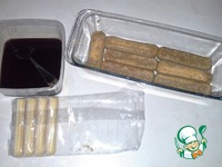 В бокал или в креманку (в моем случае это миска) выкладываем одну ложку крема на каждый слой печенья. |