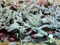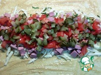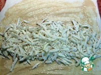 Выкладываем начинку полосой посередине теста: сначала сыр... |