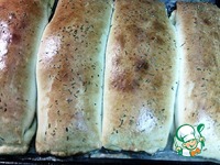 Сворачиваем рулет и аккуратно перекладываем на противень. Смазываем рулеты сырым яйцом для золотистого цвета и обильно посыпаем травами для аромата. |