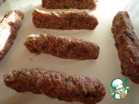 Сформировать котлетки длиной около 10 см и шириной около 2 см. Если готовить будете на мангале, то котлетки нужно нанизать на небольшие шампуры. Если в духовке, то можно обойтись без шампуров. |