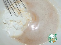 В теплом молоке развести дрожжи, влить в яичную смесь, добавить сметану, размешать |