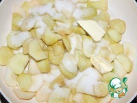 Тем временем сделать начинку из яблок. Яблоки помыть, очистить от кожуры, нарезать на дольки. В сковороде смешать яблочные дольки, сахар и сливочное масло. Потушить минут 7-10 на среднем огне |