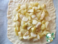 Одну часть раскатать как основу (на бумаге для выпечки). Выложить на нее остывшую яблочную начинку |