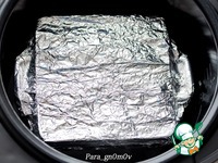 5. Плотно закрыть форму фольгой. Поместить форму в чашу для мультиварки и долить в чашу воды, чтобы она доходила примерно до середины формы с патэ. |