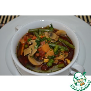 Описание: Предлагаю приготовить вкусный супчик из овощей. Готовить это замечательное блюдо очень легко и просто. Яркие цвета овощей придадут аппетитный вид вашему блюду и вы с удовольствием скушаете еще одну ложечку. Цветной, красочный супчик очень понравился моим детишкам, это главное доказательство того что суп неимоверно вкусный. Также можно такой суп давать и детям по меньше перемолотив его блендером в пюре, только варить суп без шампиньонов. Когда вы кладете ингредиенты в суп, сначала доводим до кипения, а затем варим указанное время в рецептуре.