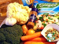По истечении тридцати минут все обжаренные овощи переложить в мультиварку, высыпать овощное ассорти без жарки, добавить сушеные корнеплоды с зеленью и включить её ещё минут на десять. Если жидкости мало, можно немного добавить воды.