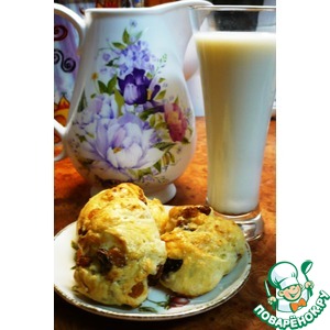 Смешать муку и молочно-дрожжевую смесь, замесить однородное тесто. Оставить в теплом месте на 1 час. |