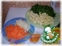 Морковь потереть на терке. Картофель и лук порезать кубиками. |