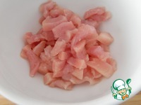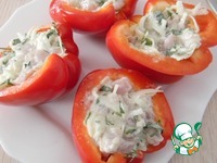 У меня небольшие перцы, поэтому продуктов указанно мало. Судите по размеру своих перчиков. Мясо курицы мелко нарезать. |
