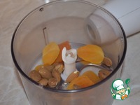 При помощи блендера измельчите курагу и миндаль. Потом добавьте овсяное печенье и хорошенечко измельчите, добавив 1 столовую ложку растворимого кофе уже из готового напитка. |