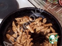 Нарезаем куриную грудку тонкими длинными полосками. |