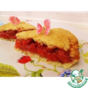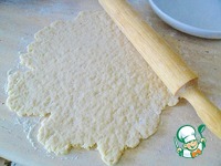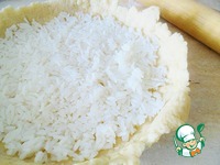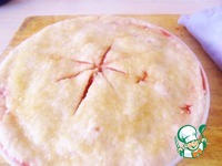 Раскатываем меньшую часть теста и накрываем сверху наш пирог (можно так же нарезать тесто полосочками и сделать пирог полуоткрытым) |