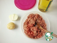 4 большие ложки фарша обжариваем на оливковом масле. |