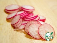 Редис нарезать на тоненькие кружочки. Прям тонюсенькие! |