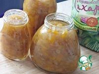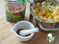 Растолочь в ступе специи. Соедените все ингредиенты (кроме сахара) с курагой, тушите на медленном огне 30 минут. |